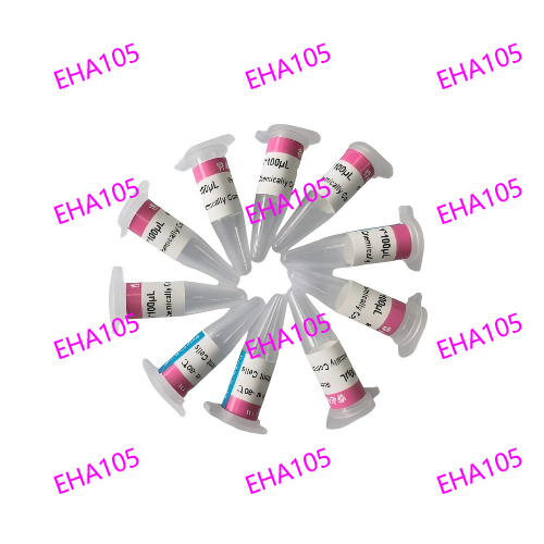 本品为农杆菌EHA105(基因型:C58 (rifR) Ti pEHA105 (pTiBo542DT-DNA) Succinamopine)制作的感受态,株由EHA101菌株改造而来,为C58型背景,核基因中含有筛选标签——利福平抗性基因rif,为了便于转化操作,此菌株携带一无自身转运功能的琥珀碱型Ti质粒pEHA105 (pTiBo542DT-DNA),此质粒含有vir基因(vir基因是T-DNA插入植物基因组必需的元件,pEHA105 (pTiBo542DT-DNA)质粒自身的T-DNA转移功能被破坏,但可以帮助转入的双元载体T-DNA顺利转移)。EHA105菌株适用于水稻、烟草等植物的转基因操作。本公司生产的EHA105化学转化感受态细胞经特殊工艺制作,pCAMBIA2301质粒(12739bp,KanR)检测转化效率>104 cfu/μg DNA。