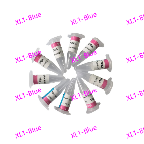 本品为大肠杆菌XL1-Blue(基因型:recA1 endA1 gyrA96 thi-1 hsdR17 supE44 (rk-,mk+), relA1 lac [F' proAB lacIqZΔM15: Tn10 (TetR)])制作的高效感受态,菌株能保证高拷贝质粒稳定复制,recA1和endA1的突变有利于插入DNA的稳定和高纯度质粒DNA的提取。hsdR17突变导致EcoK核酸内切酶系统缺失,增强了外源DNA的稳定性和提取质量。lacIqZΔM15的存在使XL1-Blue菌株可用于蓝、白斑筛选。此菌株具有四环素抗性。XL1-Blue感受态细胞经特殊工艺制作,pUC19 质粒(2686bp,AmpR)检测转化效率>109 cfu/μg DNA。